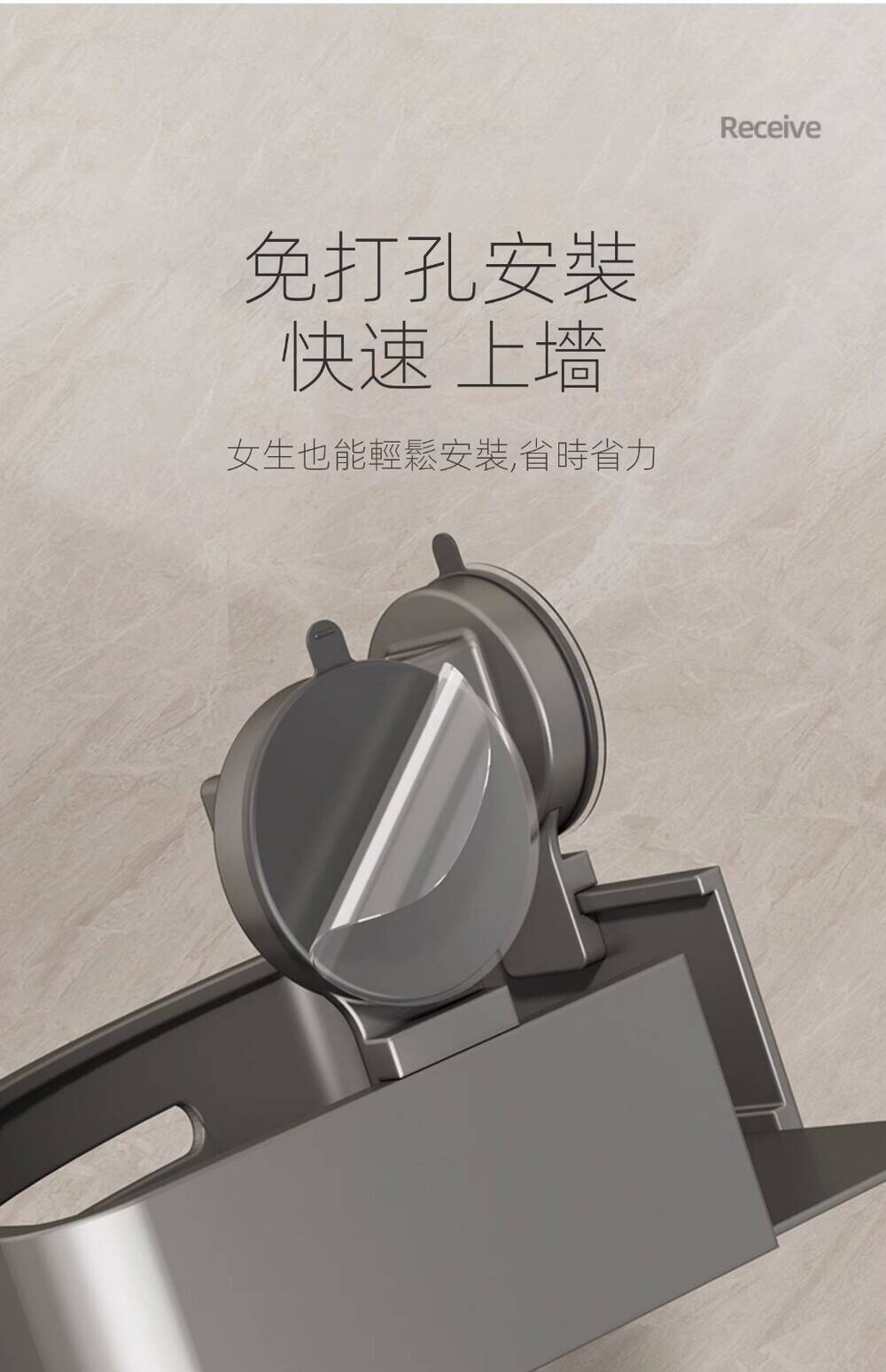 20分鐘前自帶吸盤,可隨時移動重復使用的置物架 免打孔廚房浴室衛生間三角置物架多用途壁掛收納架毛巾架 - 【超夯下殺】買一送二,共三入組 NT$999
